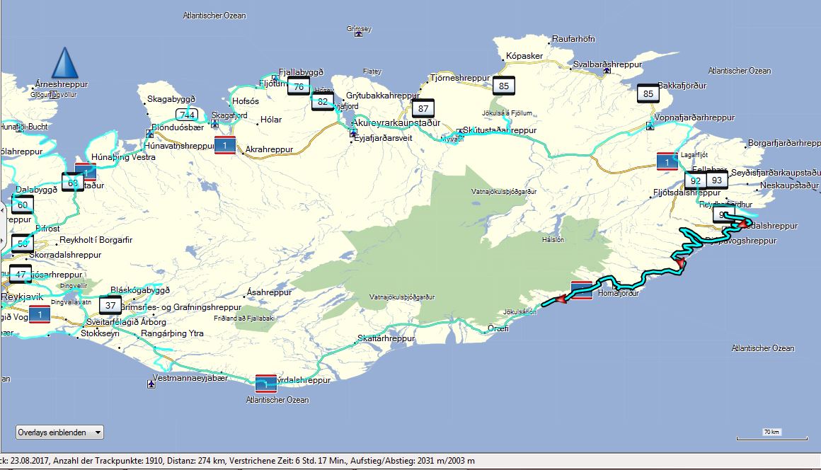 Der Track vom Montag mit immerhin noch 179 km