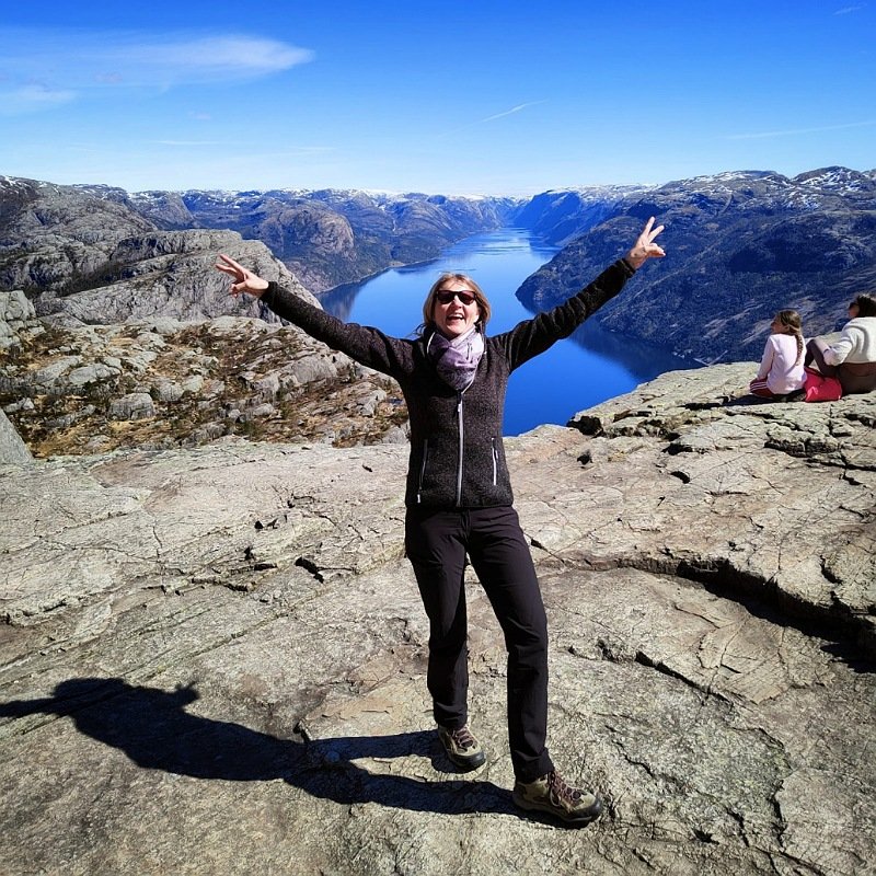 Die Aussicht war sooo grandios, und wir standen gleich mal mit offenen Mündern da, ließen uns die frische Prise ums Gesicht wehen und fühlten uns in Norwegen angekommen.