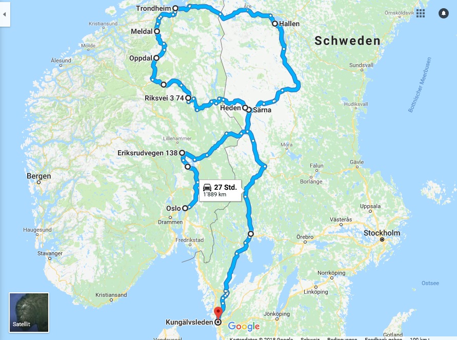 Weiter nach Norden als Oppdal fuhr ich nicht mehr, dann nach Osten, übernachtet in einem B&B in Schweden.