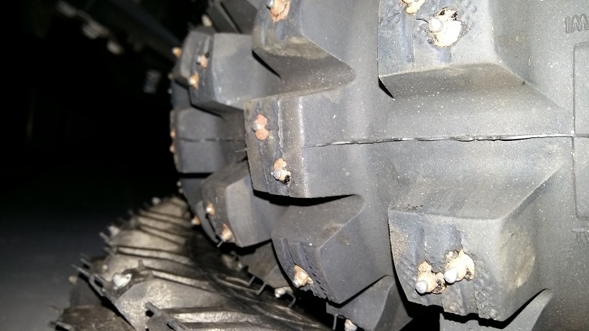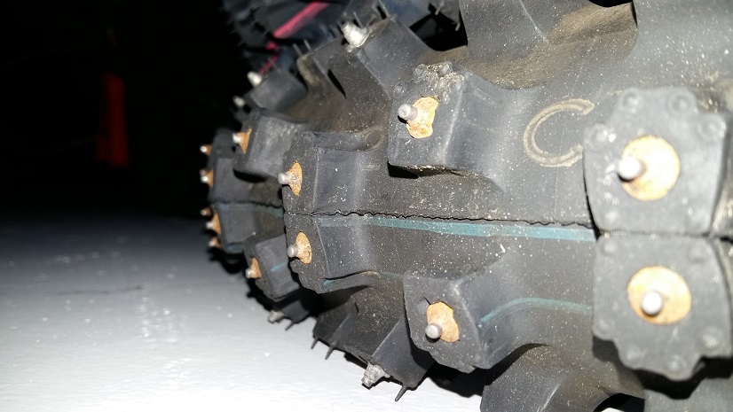 Für eine weitere Reise muss man dann nur noch neue Stollenreifen kaufen, die sind vergleichsweise billig, Schraubspikes sind teuer aber eben wieder verwendbar. Sollten unterwegs ein paar Stollen rausfliegen kann man leicht den Stollenreifen wechseln, billig.