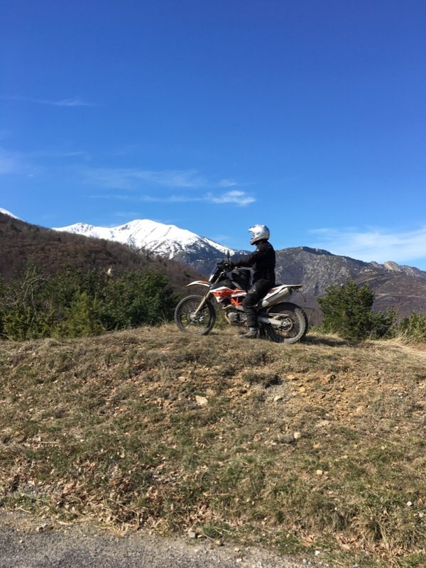 Nach dem wir von der Hauptstraße (N II) links auf die GI 502 in Richtung Darnius abbogen begann der Fahrspaß. Kurvenreiche Strecke auf bestem Belag. Weiter über die Gi 503 nach Coustouges über die Grenze nach Frankreich. Sofort wurde der Straßenbelag schlechter. Immer weiter Richtung Norden über den Col de la Descargue und Col de Palomère. Kurz vor dem Schnee trafen wir einen alleinfahrenden Italiener der dort mit seiner Hardenduro unterwegs war. Sein Englisch war nicht das Allerbeste aber irgendwie habe ich ihn so verstanden, dass der Schneebereich relativ kurz wäre aber Vorsicht geboten sei.