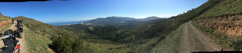 Das schöne an Satellitenaufnahmen, in den letzten Jahren wurde die Qualität stetig nachgeschärft. Auf der Halbinsel vom Cap de Creus lassen sich in der höchsten Zoomstufe Sperren und sogar Fußgänger erkennen. So war mir auf der geplanten Route von Montjoi nach Cadaques die Sperre bewusst, nur ob offen oder geschlossen nicht. Von Roses aus ging es bei stahlblauem Himmel, angenehmen Temperaturen mit vielviel Meerblick die Küstenlinie entlang. Was für ein genialer Touranfang!