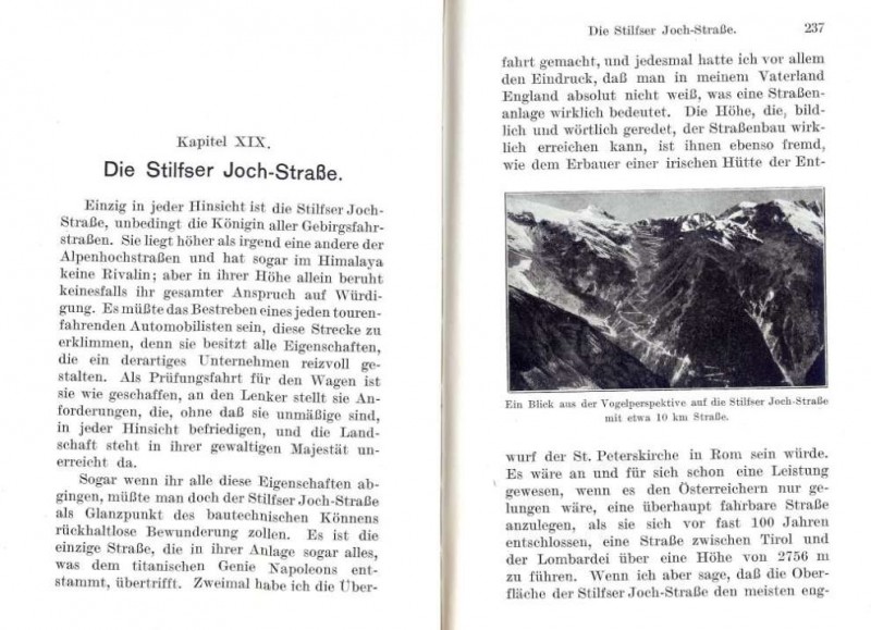 Ich erlaube mir an dieser Stelle die Startseite eines „Fahrberichtes“ aus der Frühzeit des „Moto-Alpinismus“ einzuflechten. Wie auch bei der Erstbesteigung vieler Alpengipfel waren es bezeichnenderweise wohl ebenso gelangweilte wie wohlsituierte Vertreter der englischen Oberschicht die sich mit einem „Schnauferl“ auf die seinerzeit noch nicht staubfreien Straßen wagten.