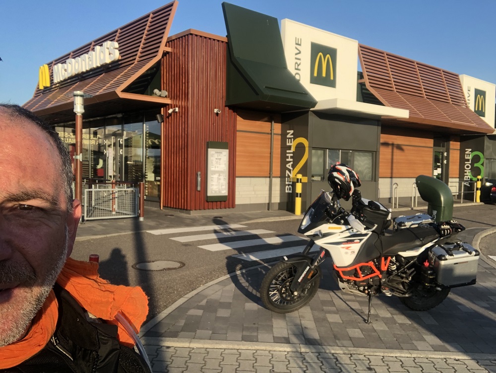 Vor der letzte Etappe - Stärkung bei Stuttgart. Die letzte Etappe geht dann nochmal über die Arschbahn.
