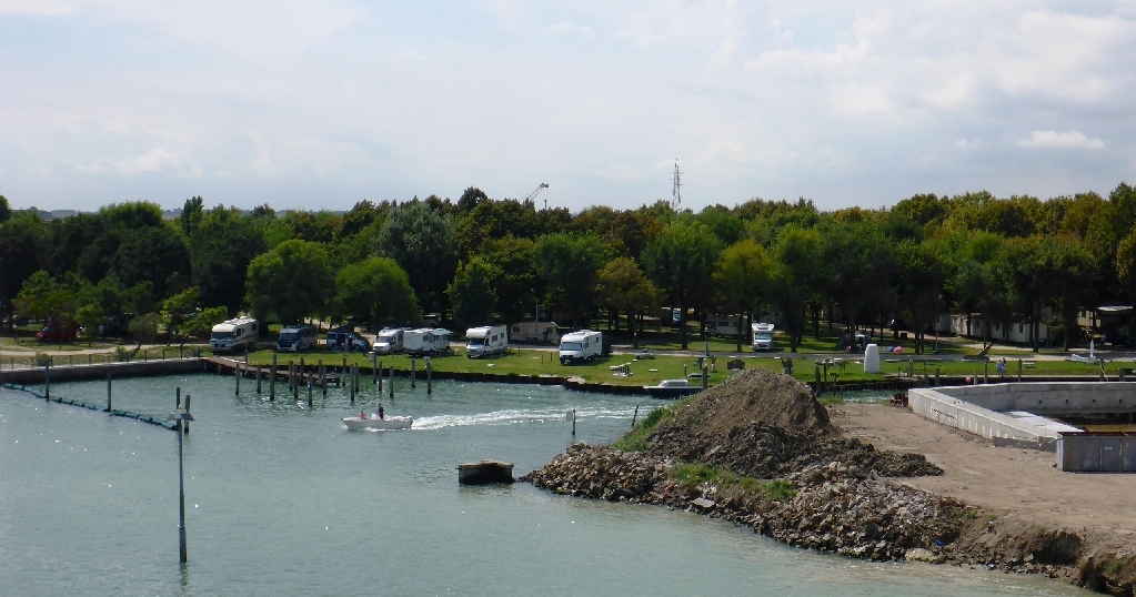 http://www.camping-fusina.com/de/" onclick="window.open(this.href);return false; im Hintergrund die Altstadt von Venedig Ist schon interessant, wenn morgens kurz nach dem Aufstehen die eigene gebuchte Fähre am Campingplatz vorbeifährt. Aber es sind ja noch drei Stunden bis zum Ablegen und nur zwei Minuten Fahrt bis zum Terminal.