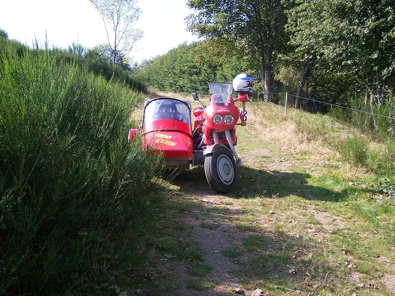 Tornante mit dem Guzzi Gespann – Max mit der Dominator. Alen fährt mit seiner KTM 690.