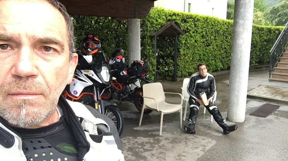 Die Abfahrt durch das Sarntal ist auch schön, keiner unterwegs bei dem Mistwetter … In Bozen gibt es einen Kaffeestop und wir entscheiden, auf Zimmersuche zu gehen. In der Gegend um den Kalterer See soll es sein und wir werden in Cles im Trentino fündig. Frisch umgebauter Bauernhof. Bis dahin fahren wir nochmals eine Stunde im Platzregen über den Mendelpass. Der Hotelfön läuft stundenlang, bis Handschuhe und Stiefel wieder trocken sind.
