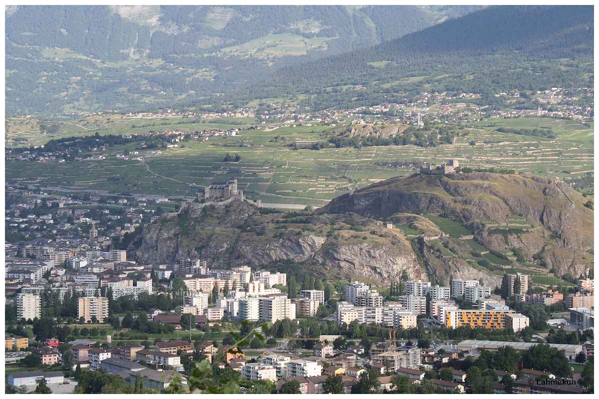 Blick auf Sion mit seinen Burghügeln