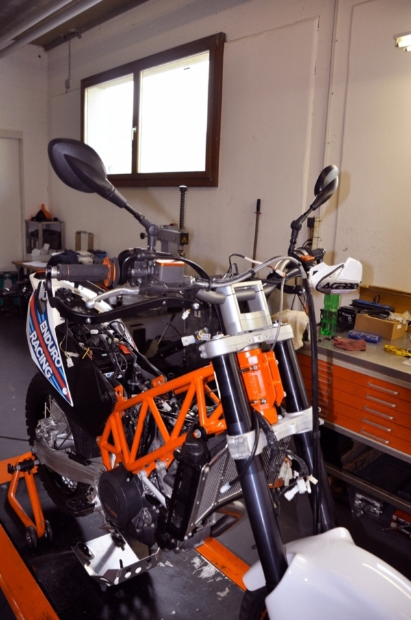 nach langer Suche & Recherche- auch Mimotos Berichte & Videos haben wesentlich zur Entscheidungsfindung beigetragen- habe ich vor ca. 2 Jahren die Seite von KTM Basel gefunden und war vom Quest Kit förmlich fasziniert- Endlich eine professionelle Lösung mit ausreichender Qualität. Da ich zwar gerne selbst "baue" und auch schon mehrere Oldtimer (Autos) restauriert habe, traue ich mir schon einiges zu- aber nicht gleich beim ersten Bike-Umbau! Allerdings habe ich auch im Vergleich zu anderen Kits hier sehr schnell meine Entscheidung für den KTM Basel Kit getroffen. Nach ausreichend Recherche im Internet, kam es zur Bestellung und Anreise mit dem Bike am Anhänger. Und wie so oft, hatte ich sehr spezielle Vorstellungen, wie mein Bike aussehen soll- Kontakt zum Grafiker von KTM Basel (Sam Farah in UK) und schon war sehr schnell eine Variante meiner gewünschten "Martini Racing" Design Idee gefunden- nur eben statt "Martini" haben wir dann "Enduro" hineingeschrieben...