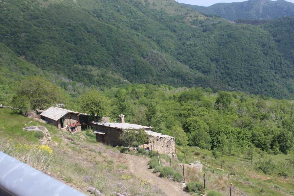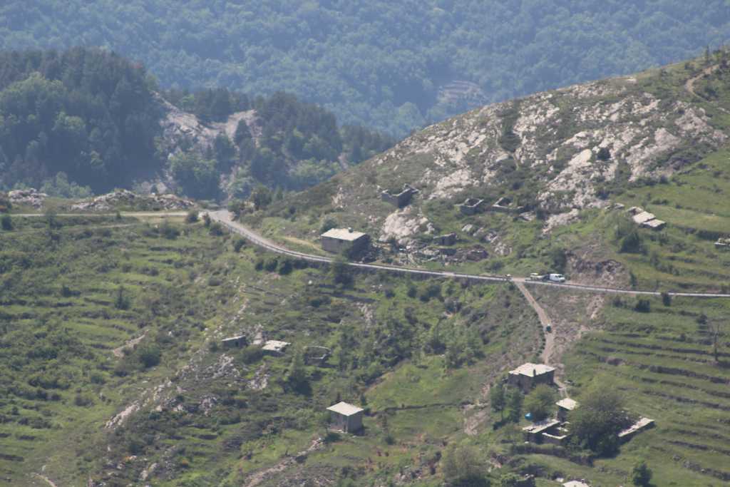 gleich stramm Bergauf mit vielen Kurven und strammen Spitzkehren. Vorbei an alten Häusern