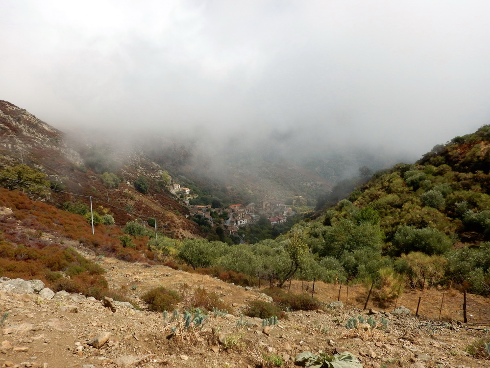 die Sicht war gleich null, die Straße oder besser der Weg, sehr eng, und hinunter nach Roghudi, eine Spitzkehre nach der anderen.