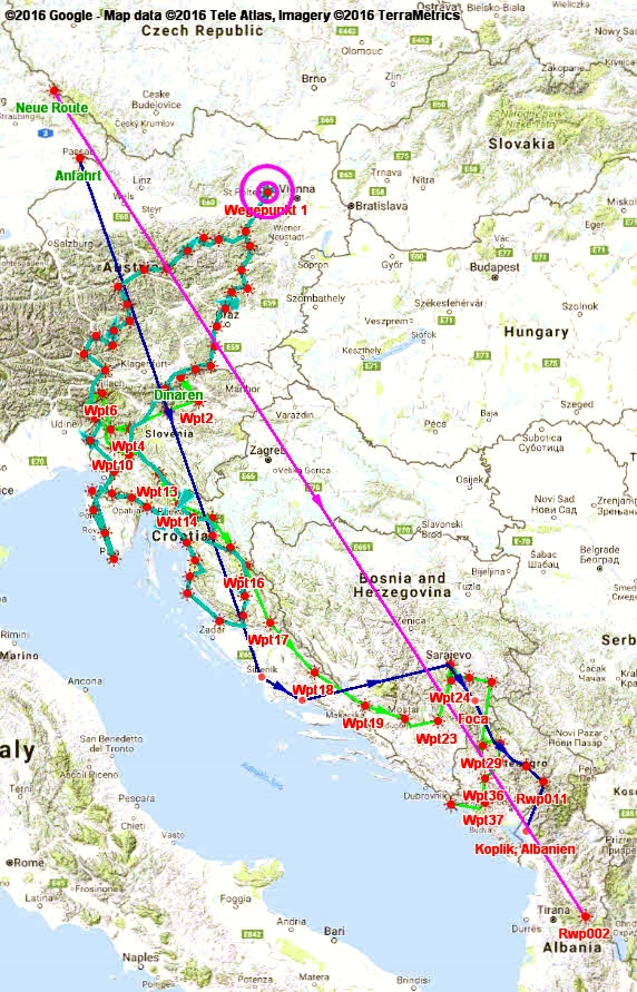 Über Österreich, Slowenien, Bosnien-Herzegowina, Montenegro nach Albanien.