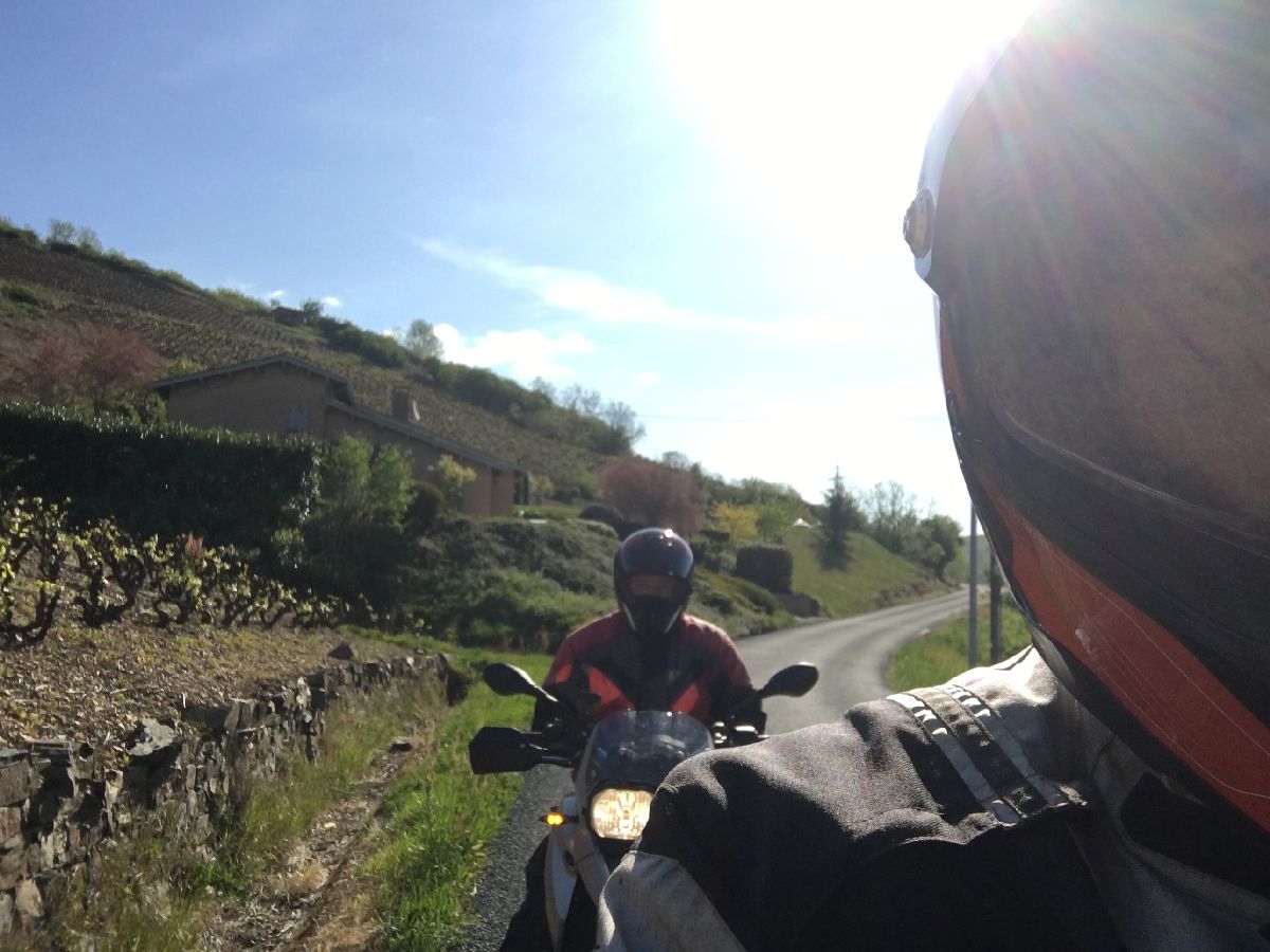 Direkt nach Westen bolzengrade Richtung Thoissey, Frühstück, und ab dann wurde es gut: Beaujolais, ab in die Berge und grade runter nach Süden.