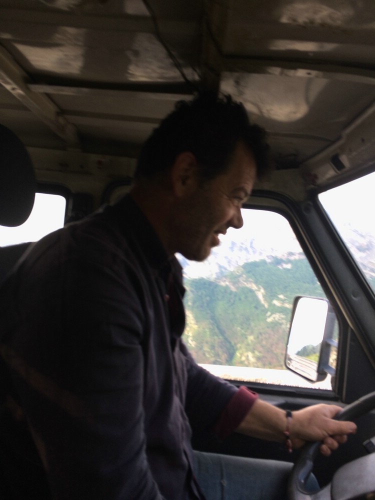 Alen wollte sich die offroadstrecke nach Shkoder nicht entgehen lassen und ist hinter uns mit dem Motorrad hergefahren. Zum Glück. Zu dritt hätten wir das in der Kabine des Pritschenlasters sicher nicht überlebt… Einerseits wegen der fehlenden Sicherheitsgurte. Andererseits wegen des auf voller Lautstärke aufgedrehten Autoradios mit albanischer Folkloremusik. Und einem singenden und sich dabei in die Hände klatschenden Fahrers.
