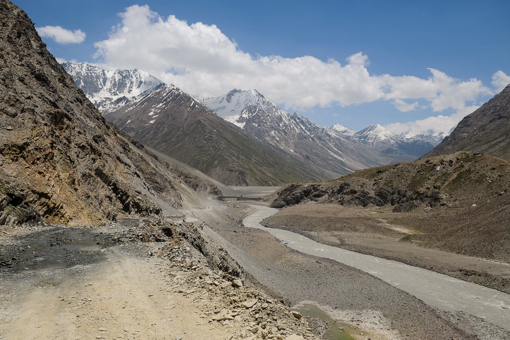 Die "Straße" zwischen Spiti Valley und Keylong. Ich war am Anfag richtig nervös, durch so etwas durchzufahren, aber habe mich dann doch daran gewöhnt.
