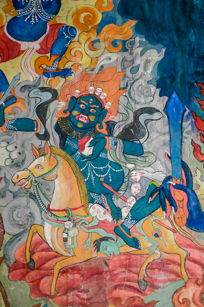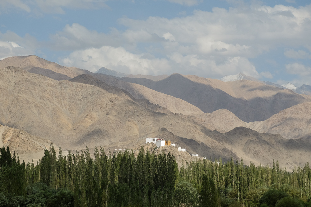 Der gestrige Tagesausflug war sehr nett. Zuerst stand das Kloster Thiksey auf dem Programm das, wie so üblich in Laddakh, auf einem Felsen klebt. Unter dem Kloster sind, am Felsen entlang, die weißen Behausungen der Mönche und die Wege dazwischen schlängeln sich zum Kloster hinauf. Erfreulicherweise darf man in Thiksey in den Tempeln ohne Blitz fotografieren und es gibt jede Menge Tempel. Tempel mit furchteinflösenden Figuren, aber auch einen Tempel mit einem freundlichen Buddha Meitreya, dem Buddha der Zukunft. Gute zwölf Meter hoch ist er und sitzt in einem zweistöckigen Tempel und lächelt freundlich auf seine Besucher herab. Auch die Aussicht war wunderbar.