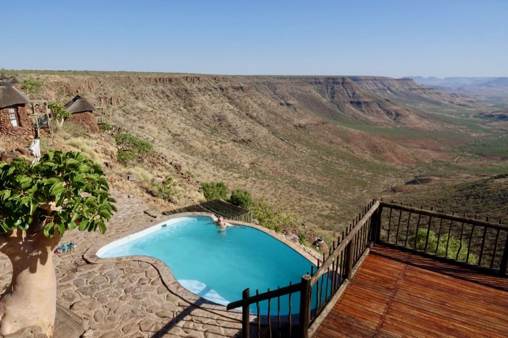 Unser Zelt konnten wir leider nicht mit auf die Tour nehmen da wir auf der Tenere zu wenig Platz haben. Also Übernachten wir in Lodges und Gästefarmen. Wir sind bis jetzt 1300 Kilometer, davon 650 Kilometer Piste gefahren.