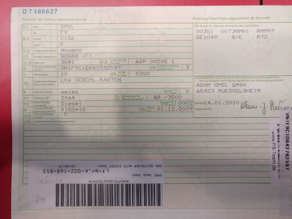 Gerade reinbekommen habe ich einen ganz passablen Opel Movano.