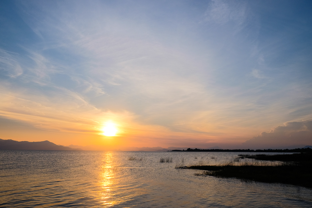 Sonnenuntergang am Shkodrasee