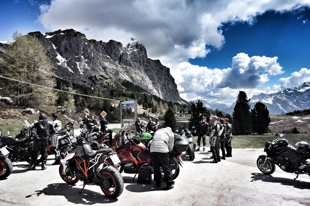 Landschaftlich war das Heute wunderbar - schöner wolkenmelierter Himmel, warme Temperaturen, relativ wenig Verkehr, nette Typen getroffen (3 Oberfranken auf dem Falzarego :Pr: ), flotte Runde, war pünktlich wieder am Hotel, bereits alles verladen, Morgen gehts wieder nach Hause.