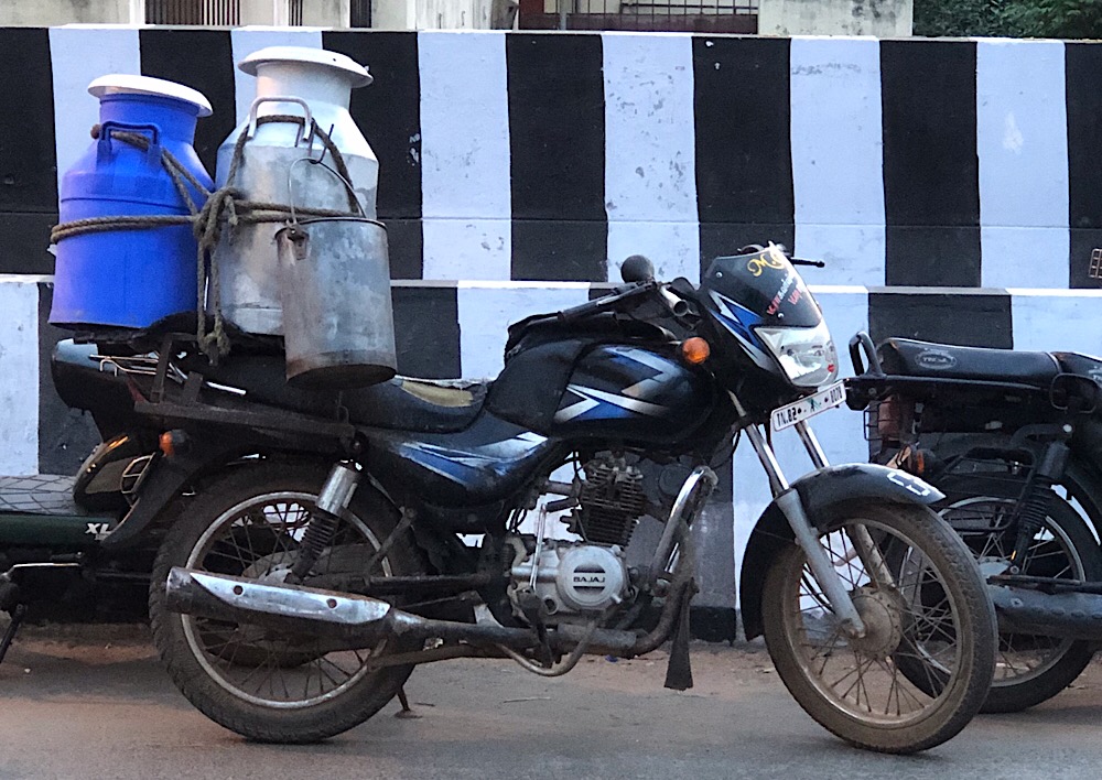 Der Verkehr der Millionenmetropole Chennai (und auch im restlichen Indien) FLIESST im Sinne des Wortes. Flüssigkeit füllt jeden leeren Raum. Und das tun hier alle, insbesondere Motorradfahrer. Begleitet wird dieses Fließen von Hupen. Ständig, dauernd und überall. Es gilt das Recht des Stärkeren.