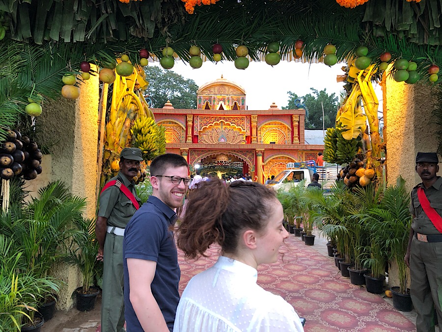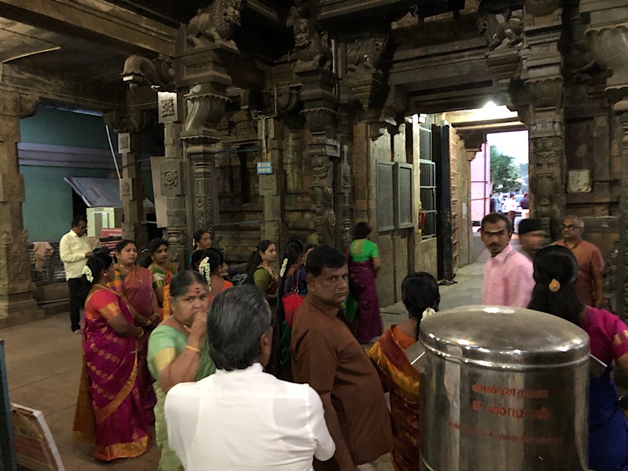 Wir wurden nach innen komplimentiert. Schuhe aus, keine Fotos. Über mehrere Kammern gelangten wir ins Allerheiligste, wo Hari in traditioneller Kleidung offenbar einen Segen von einem Hindupriester erhielt und allerlei andere Gäste sich hinter ihm anstellten. Die Luft zum Schneiden, Schweiß! Wir fühlten uns geehrt, so weit rein zu dürfen.