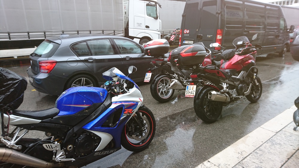 Somit ist der Rest kurz erzählt. Mit sehr schlechter Sicht und Unmengen an Wasserfontänen fuhr wir nun auf der B56 und B27 bis Sibenik und ohne an zu halten auf der B58 (Abkürzung von -18 Km gegenüber der Küstenstraße) weiter bis zum Etappenziel, den Hafen von Split. Wo wir eine gute Stunde früher als geplant geschlaucht, aber froh ankamen.