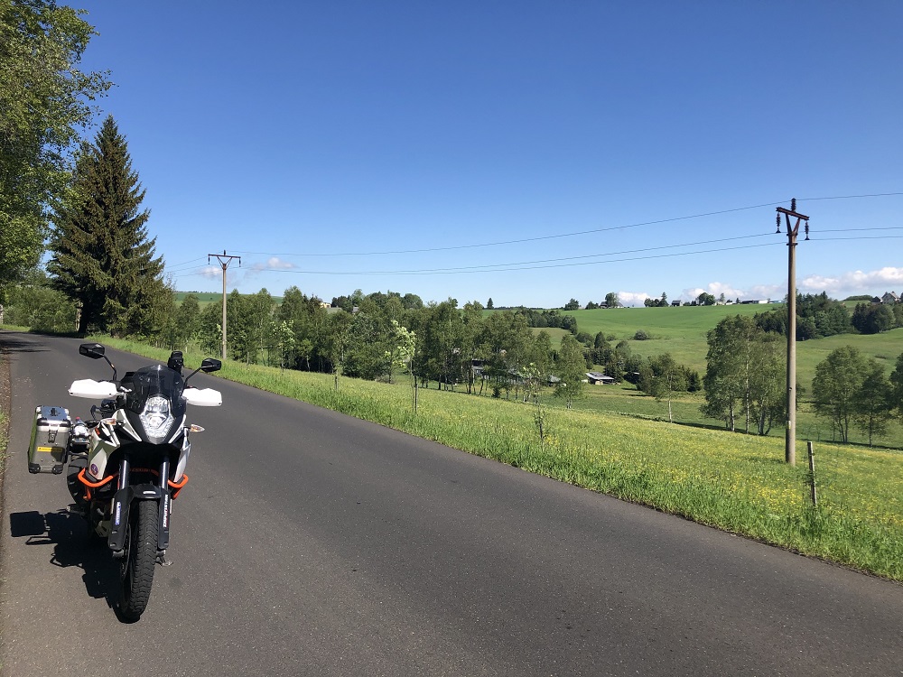 Auf dem Weg an die Grenze Ich erreiche also über kleine Strassen den Grenzübergang Reitzenhain nach Tschechien. Dort geht es unmittelbar durch ein einsames Hochmoor nach Nordosten. Traumhaft. Nichts los. Verstreute Höfe und Häuser.