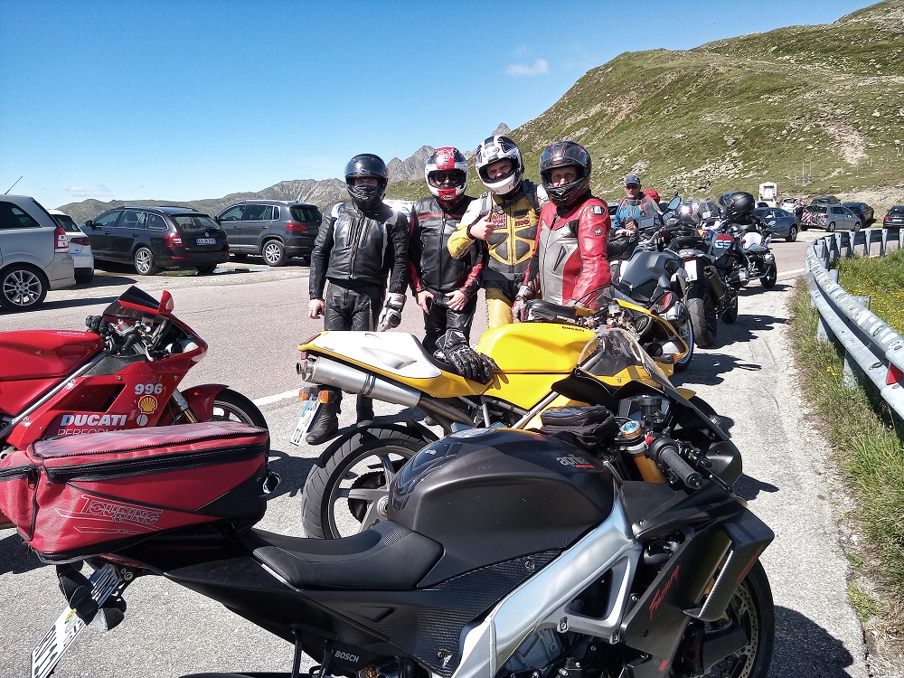 Dann am Freitag morgen um 9:00 am Kreisel bei Imst zum Treffpunkt. so ca. 9 Fahrerrinnen mit Motorrad machten sich auf den Weg über Reschen, Stilfser, Gavia, Tonale in's Passeier Tal. Was ich so gehört habe, haben vielen die bisher unbekannten Passagen durch die Weinberge und Obstanlagen sehr gefallen. Ach, und Micha und Alwin begleiteten uns ab der Tibet Hütte.