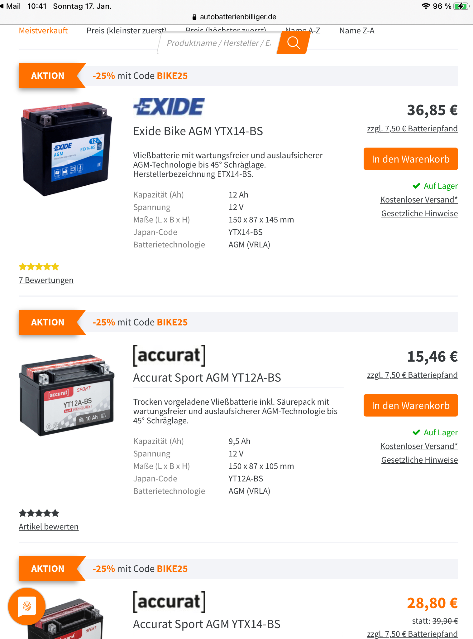25% auf Motorradbatterien: