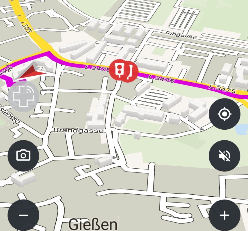 Dort den Überlagerungsmodus aktivieren - und schon werden die erlaubte Geschwindigkeit die aktuelle Geschwindigkeit und die Gefahrenstellen über allen anderen Apps drüber angezeigt.