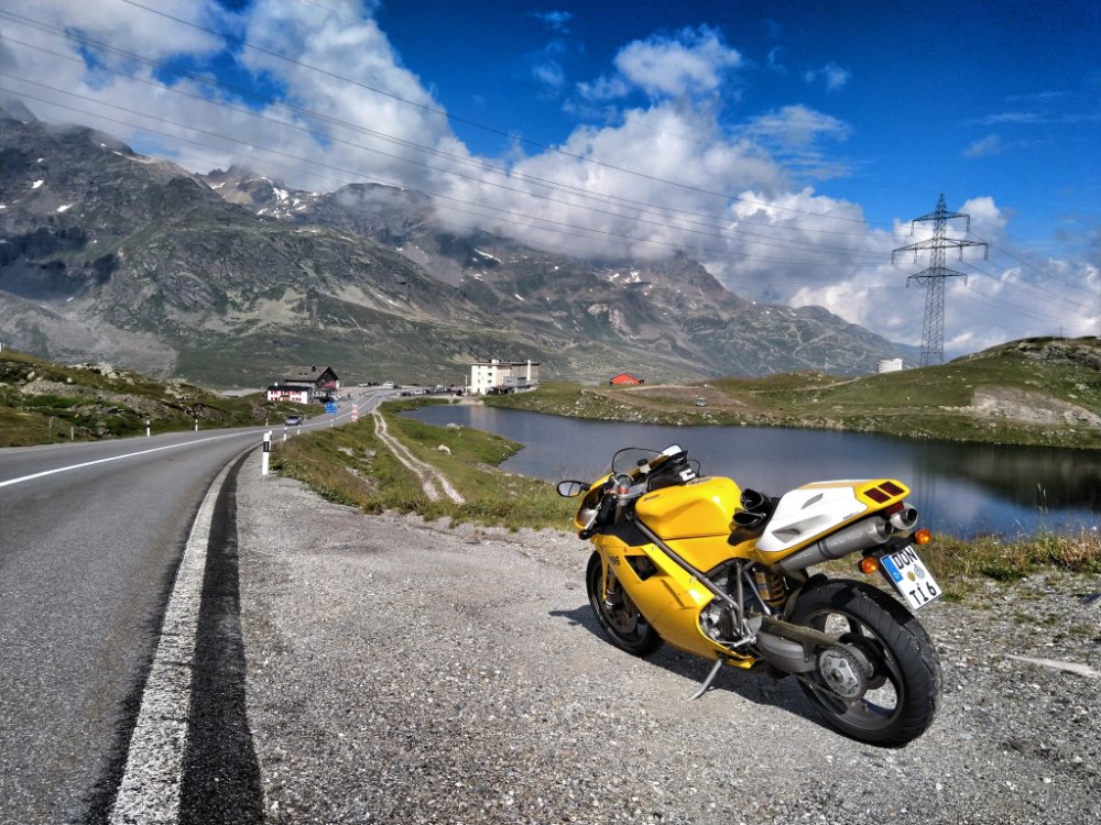 Der Rest ist schnell erzählt. Die Malser Heide hoch dachte ich an die geniale Story vom JVS wie er den Asphalt mit seinen Knieschleifern verformte. Ich lies einen kleinen Respektabstand von ca 65cm. Den Reschensee entlang fing es dann zum richtig Regnen an. Nach dem See wars wieder trocken. Im Hotel angekommen begann dann die Kühlung von innen. Und draussen fings an zu schütten.