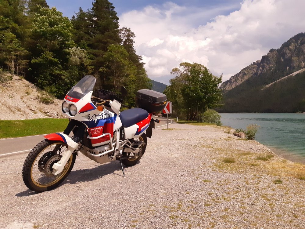 Angesichts des schönen Wetters wählte ich die klassische Anfahrt entlang des Plansees, dann durch Berwanger Tal und Hahntennjoch zur Piller Höhe. Dank eines Standgeräusches von nur 86 dB(A) säuselt die Twin absolut unauffällig durch die Täler und Höhen.