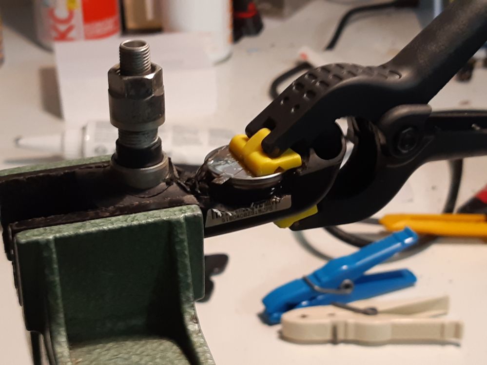 Als ambitionierter Bastler wollte ich mich damit nicht abfinden, so wurde der Sensor bzw. die Vergussmasse gemäß Anleitung aus dem KTM-Forum geöffnet und eine neue Batterie eingesetzt.