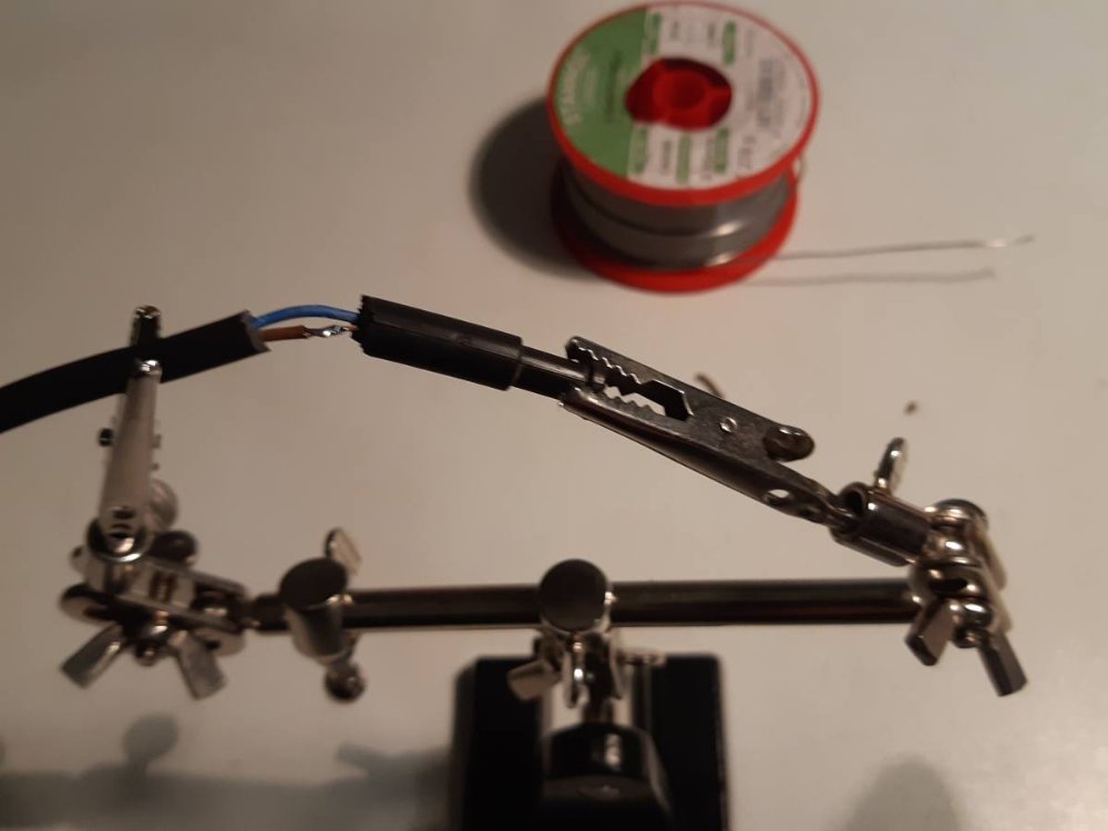 Dankenswerterweise war nach Entfernen der Isolation noch ein Rest des Kabels erreichbar sodass ich mich gegen den Neukauf des Sensors (28€) entschied und für den Einsatz des heimischen Lötkolbens: