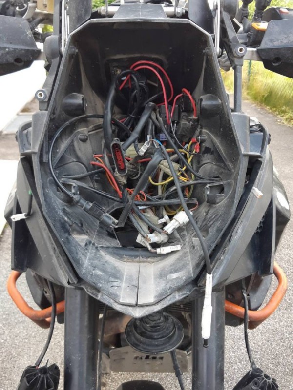 Das KTM Forum hilft beim Auffindes des Sensors (Zitat: "Drücken Sie den Hupenknopf und folgen Sie dem Geräusch" :lol: ), und so fand ich dann auch schnell die Unterbrechung des Signals: