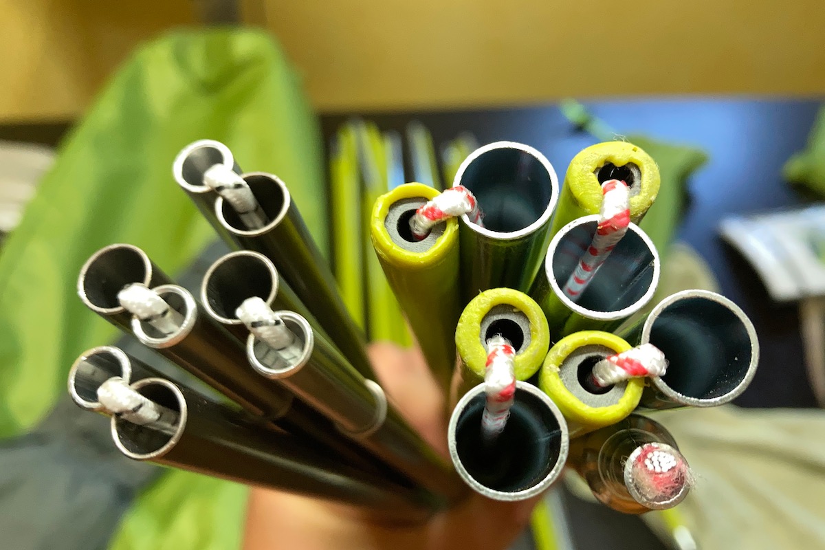 Rechts im Bild die Stangen vom neuen Zelt, links zum Vergleich die vom Exped-Leichtzelt, das ich in Norwegen entsorgt habe (Stangenbruch und Außenzelt undicht):