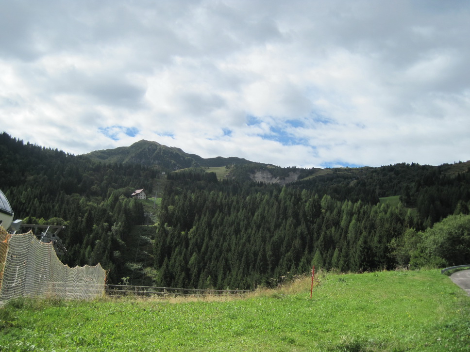 Also kurz vor 1800 Uhr den Passo Valles hinunter Richtung Passo Rolle, aber schon vor der Kreuzung, kurz nach den letzten