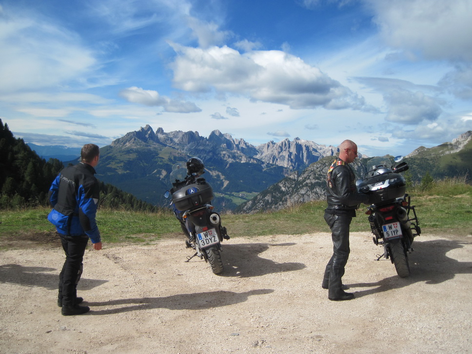 Nach dem Frühstück gings den Passo Valles mit 15 Mopeds hinunter und den Passo Rolle hinauf,