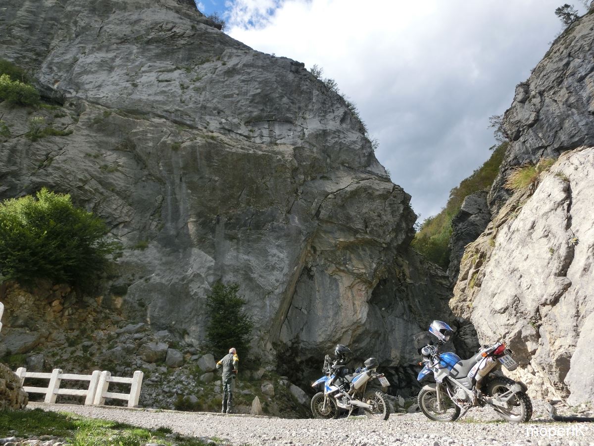 Ich schiebe mein Moperl an ein ebenes Plätzchen, suche einen Stein und mach mich ans ausbauen