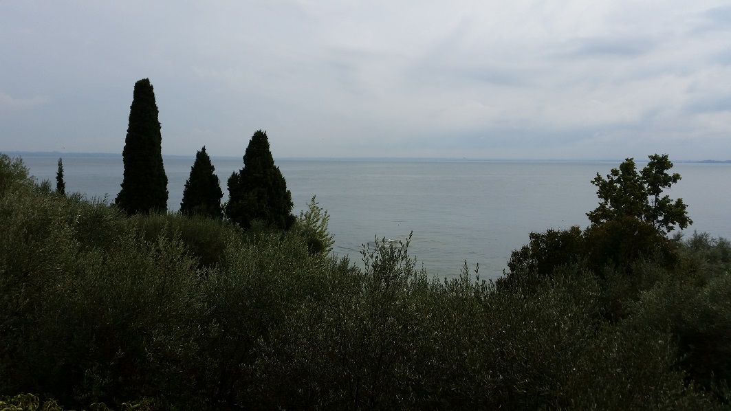 Am Vortag haben wir schon die Taschen gepackt und ins Auto verladen. Wir hatten nur noch das nötigste auf dem Zimmer und mussten die Motorräder verladen. Doch es regnete in Strömen. Fast die ganze Fahrt zum Gardasee hat es geregnet und das nach max. 2 Stunden Schlaf in der Nacht. Irgendwie fand ich keine Ruhe. Mal weniger, mal mehr, aber meistens mehr. Erst ca. 100 km vor dem Ziel hat der Regen aufgehört. Auf der in den Gardasee ragenden Halbinsel San Vegilio haben wir dann eine Pause eingelegt um etwas frische Luft zu Tanken und die Beine mal wieder gerade zu bekommen.