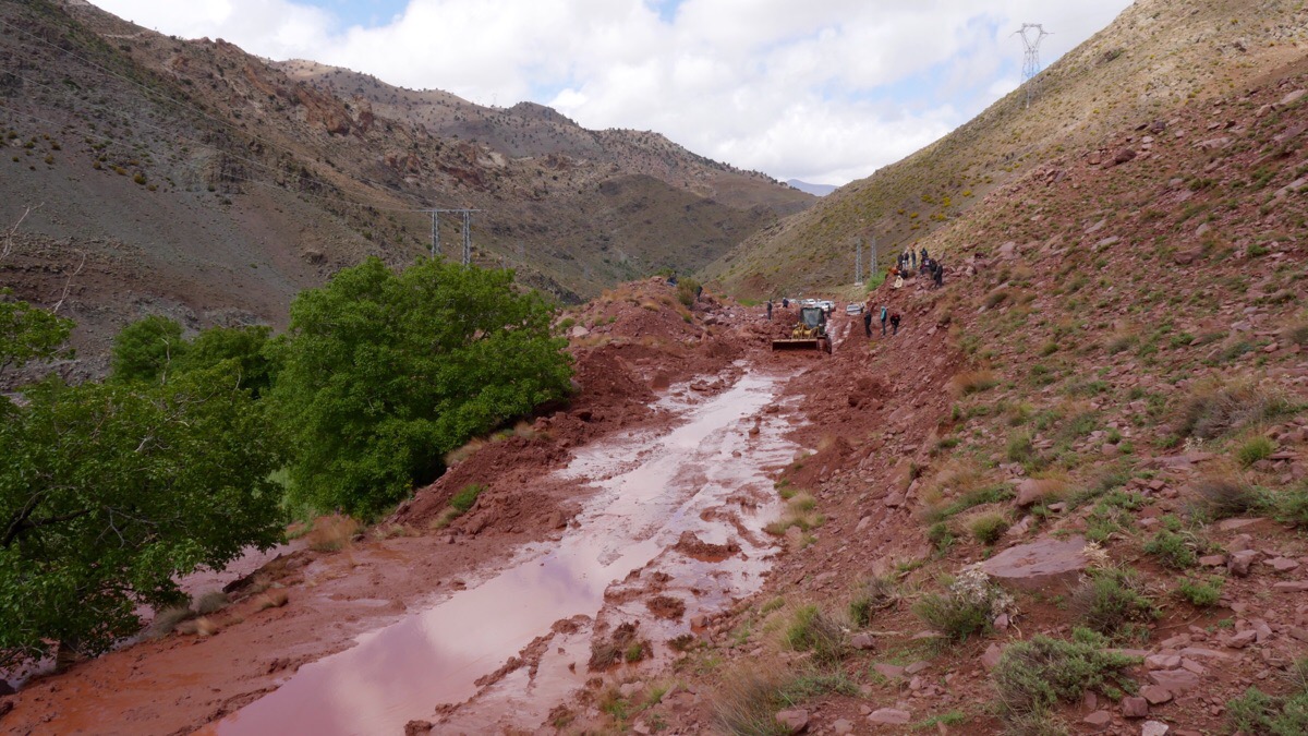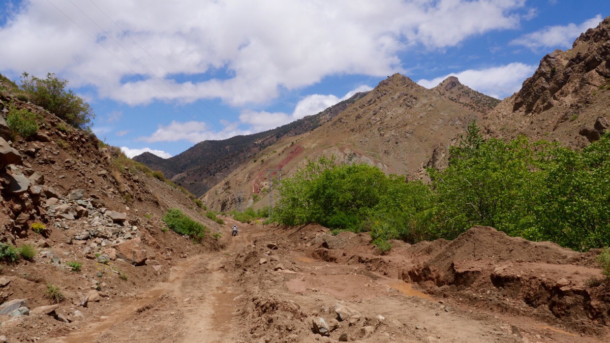Eigentlich wäre heute die Idee gewesen die landschaftlich tolle R307 von Demnate nach Ouarzazate zu fahren und richtig zu geniessen. Nachdem wir gestern schon einen Umweg fahren mussten da die Hauptstrasse von Ait Ourir nach Ouarzazate wegen Hangrutsch und Überflutungen gesperrt war dachten wir heute die 170 Kilometer würden ne lockere Geschichte. Falsch gedacht!