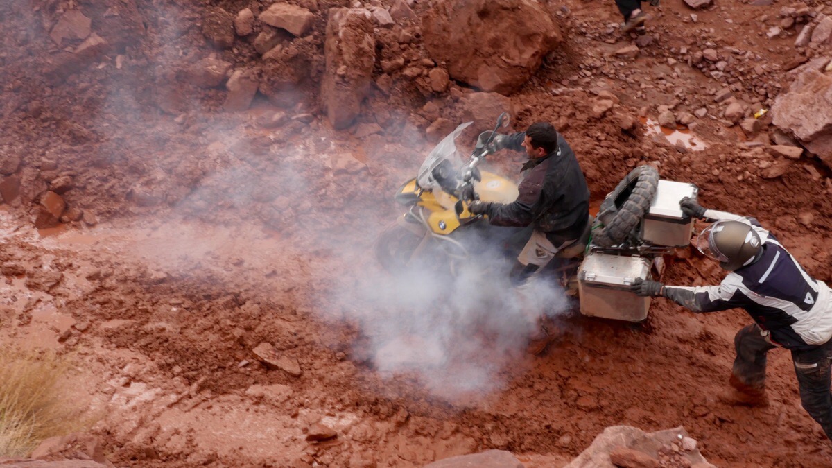 Müde, total schlammverdreckt und kaputt sind wir schliesslich um 18:30 wieder beim Hotel eingetroffen von dem wir heute morgen um 11 Uhr losgefahren sind. Nach einer Fahrt zur Waschanlage inkl Kärchereinsatz an Tigern, Kleidern und Stiefeln sowie einer leckeren Tajine sind wir wieder so halbwegs fit. Ich hatte heute definitiv genug Abenteuer für eine ganze Weile!