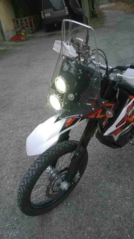 Hallo an das super Forum hier, vielleicht interessiert es jemand, was ich im Forschungsfeld 690 Enduro derzeit so für mich herausgefunden habe. Nach einigen 640 Adventures und dann 990 und 1190 (sorry, letztere für mich kaum mehr Enduro) zurück zur Einzylinder, hat mir immer schon am meisten getaugt, aber nicht von der Stange reisetauglich, für mich drei Mankos: Sitzbank (originale ist "Mahagoni lackiert"), Naviposition mies, Windschutz nicht vorhanden. Sitzbank behoben, wird durch Touratech keine Goldwing, aber es passt. Windschutz habe ich durch PP-Windschild zu verbessern versucht, eher nur Placeboeffekt. Und, ich hätte es nicht geglaubt weil ich bin ja ein alter Endurist, aber der Winddruck, wenns flotter wird, nervt und strengt auf die Dauer an. Wollte keinen Totalumbau, größere Tanks schon gar nicht, was ich sonst so fand war nicht streetlegal. Jetzt bei Nomad Adv in Holland fündig geworden, 1000 Euronen überwiesen, sieben lustvolle Stunden in der Garage verbracht und heute bei 4 Grad ausprobiert. Fazit: Für mich passt das Ding, so ähnlich hätten es meine Landsleute aus Oberösterreich schon vor Jahren in die Schauräume stellen sollen. Nomad Adv verwendet das originale Windschild der 450 Rally und gute LEDs mit Prüfzeichen. Fertigung ist top, vielleicht suchen manche von euch so etwas. Liebe Grüße. Helm