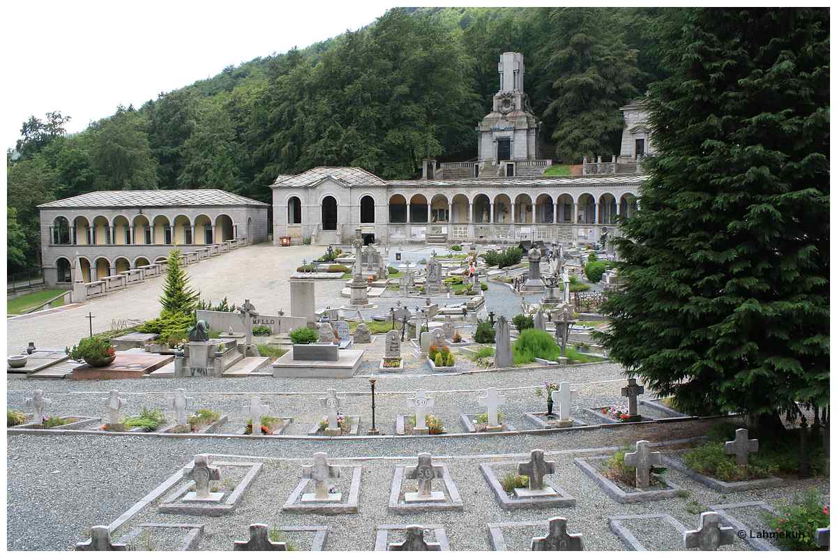 Ein echtes Highlight im grünen Nirvana meiner Route – zumindest für mich – ist die historische Monumentalanlage ‚Cimitero Santuario di Oropa‘ und die eigentliche ‚Santuario di Oropa‘, die völlig unvermittelt vor der waldumschlossenen Asphaltpiste auftauchen. (Klar wusste ich, was mich erwartet! – Selbstredend dank einem der Berichte hier im Forum.)