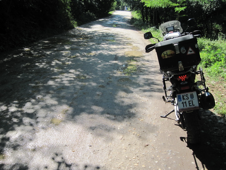 Nach einem kräftigen Frühstück (Spiegelei, Speck, Wurst, Käse,Tomaten, und selbst gemachter Himbeermarmelade, wollte ich die anfängliche Schotterstrecke ins Navi eingeben,