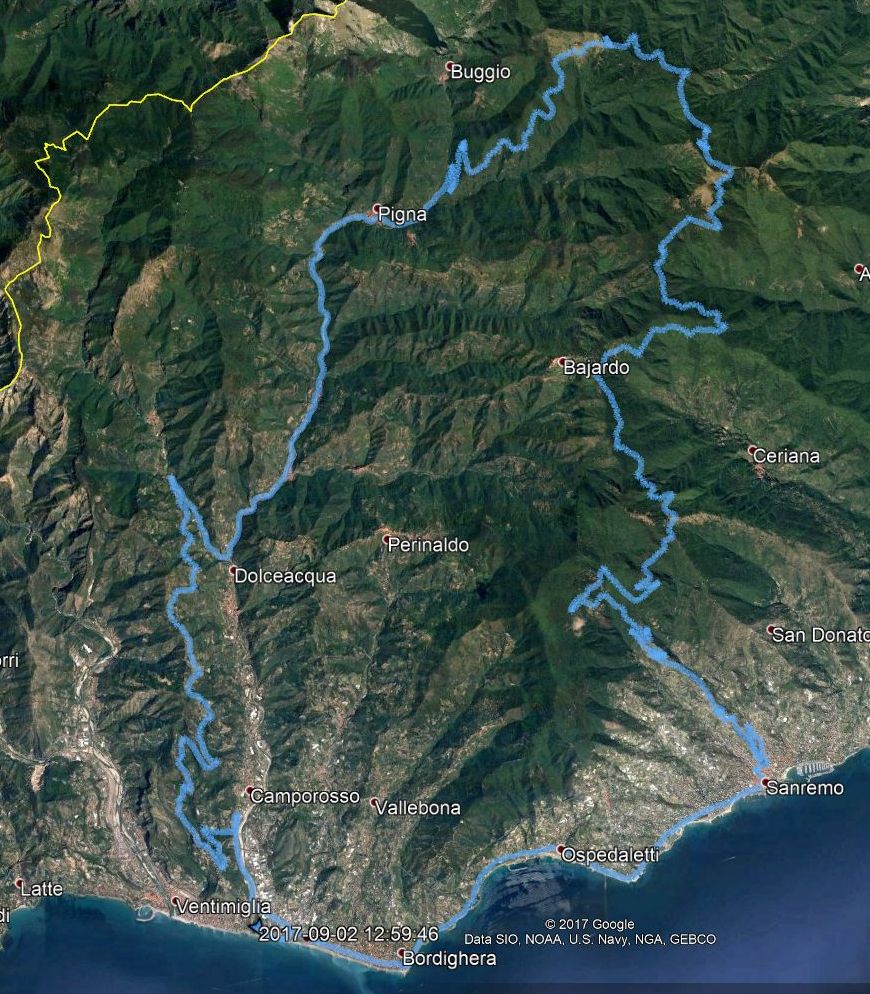 Also raus aus Ventimiglia Richtung Westen der Küste entlang, über die Französische Grenze auf Menton zu. Durch Menton halb durch und abbiegen nach Norden.