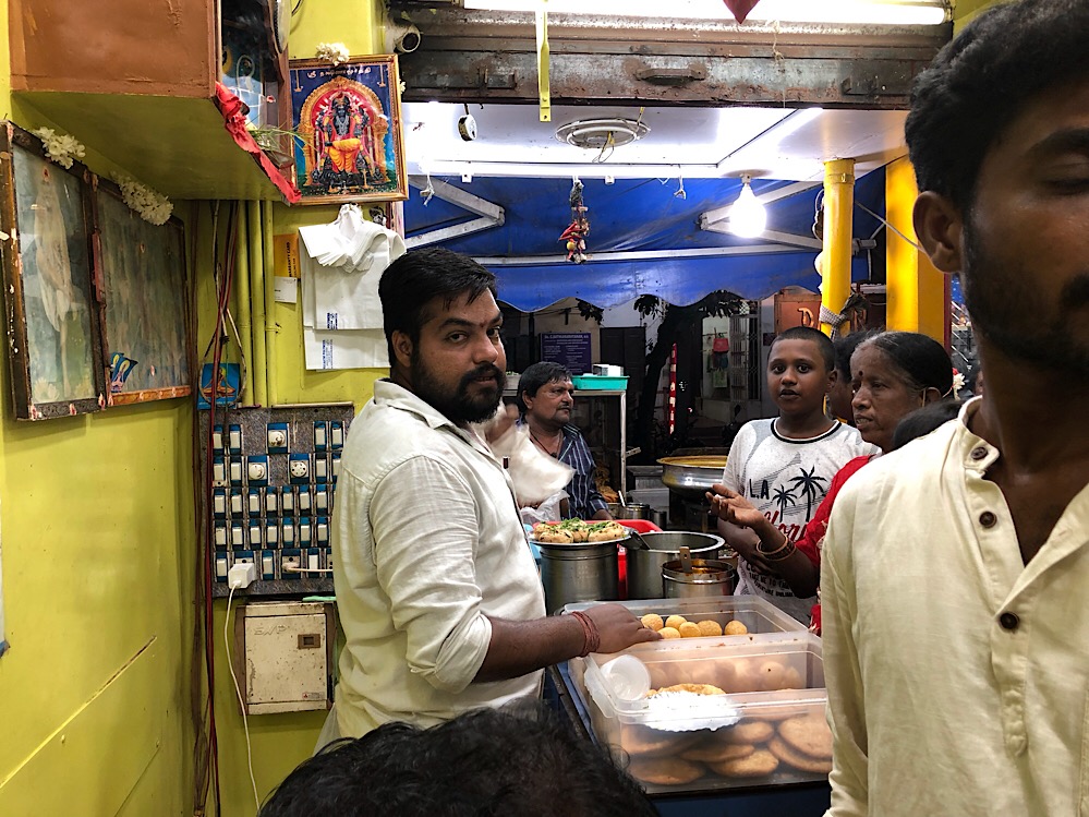 Es war voll. Wir drückten uns trotzdem rein. Gereicht werden nordindische Spezialitäten - fragt mich nicht nach dem Unterschied. De facto war es gut und scharf. Da die gefühlte Temperatur in dieser Schweißkammer mittlerweile 50 Grad betrug, lief die Transpiration in Strömen.