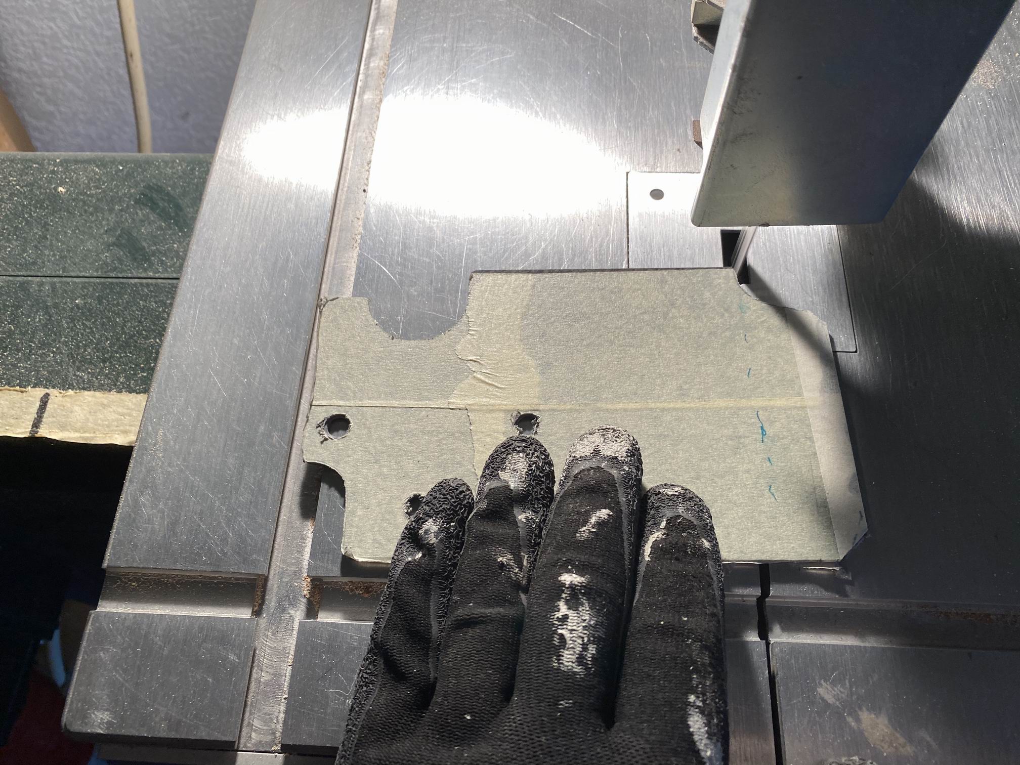 Carbon Grundplatte für das Koso-Cockpit unterm Sägeblatt