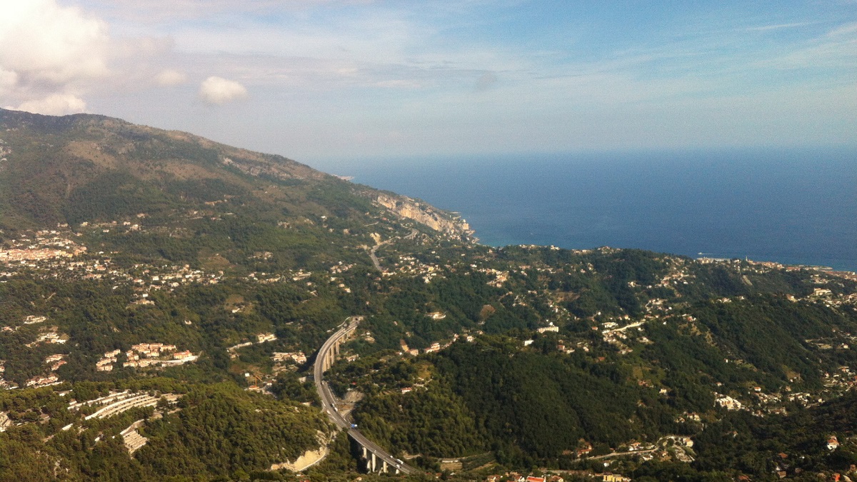 Blick auf die italienisch-monegassisch-französische Mittelmeerküste...